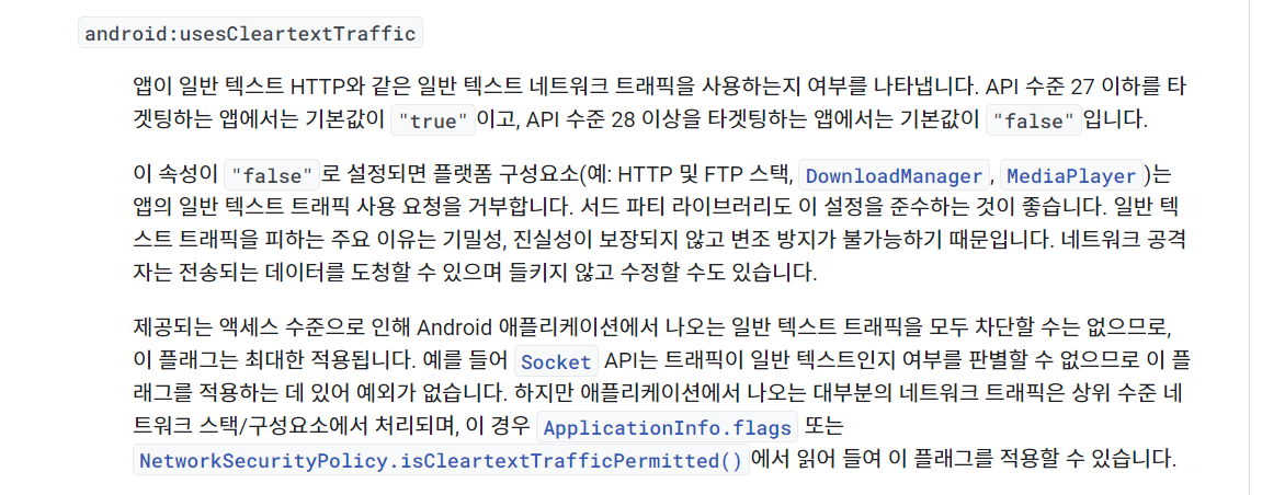 일반적으로 API 통신은 HTTP 을 이용해서 호출하라고 합니다. 이번에 사용했던 PAYAPP의 경우에도 동일합니다. 이런 경우 안드로이드에서는 통신과 관련된 몇 가지 해야 할 부분들이 있습니다.