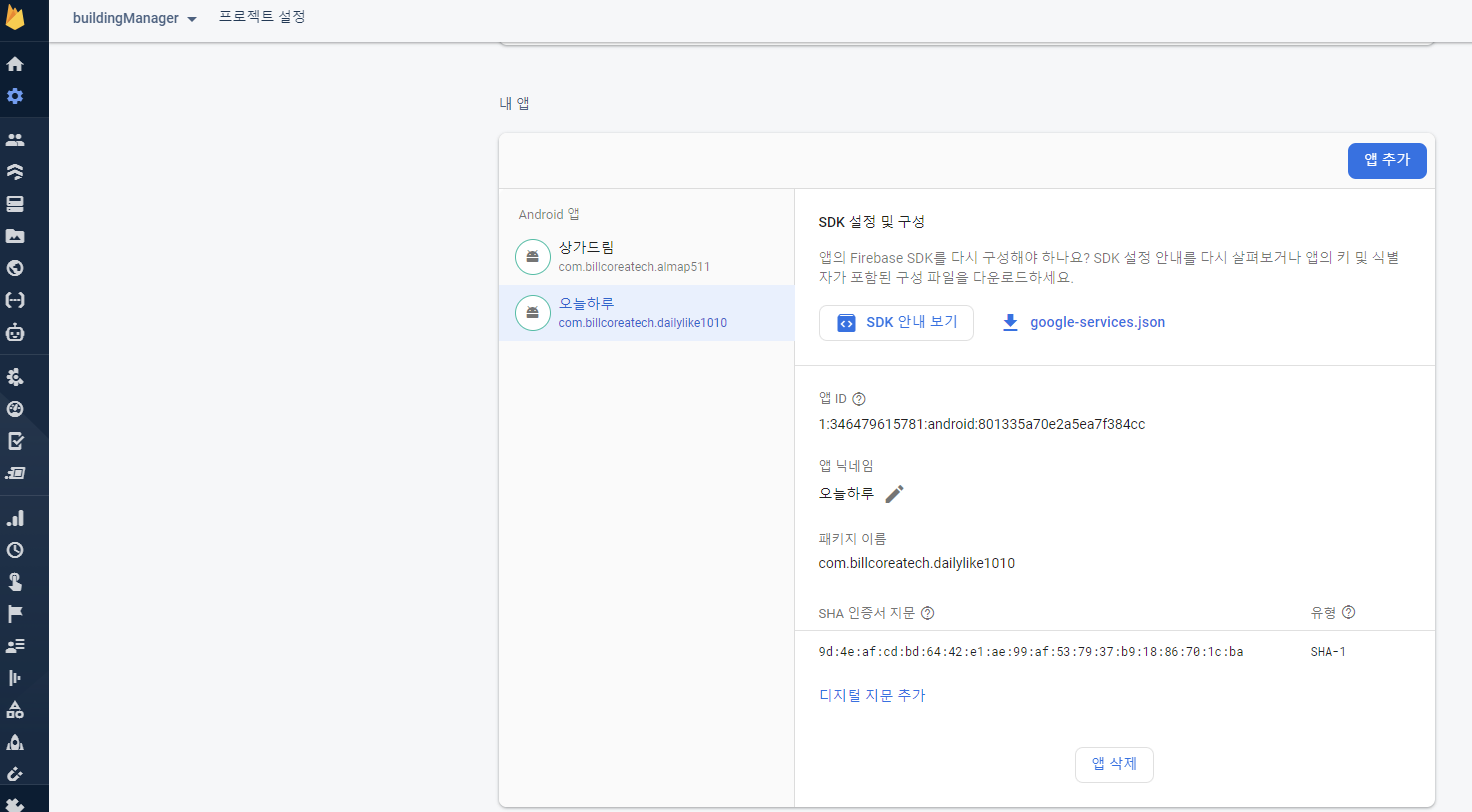 인증서 지문이 sha1, sha256으로 나누어지는 것도 있고, debug와 release로 구분되어 있다. 잊지 말자.