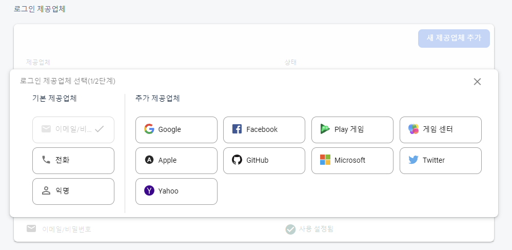 그럼 새 제공업체 추가를 클릭해서 설정을 추가해 보자.