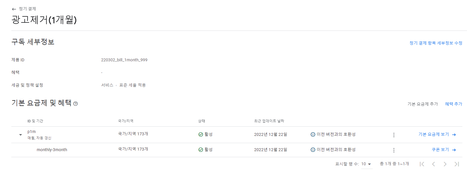 그중에서 현재 운영 중인 구독 보기를 선택합니다.