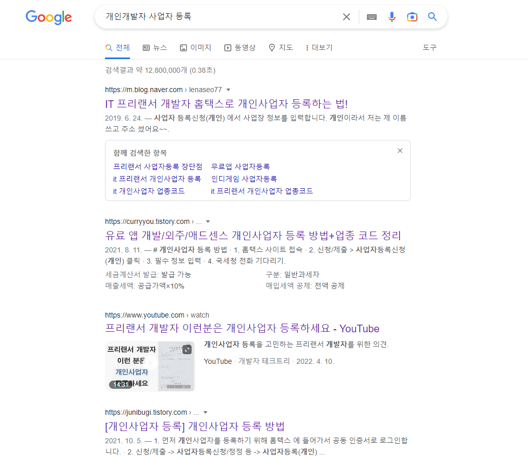 세무서에 가야 하나? 어떻게 해야 하는지 모른다. 그래서 일단은 구글님(?)에게 물어보기로 했다. 네이버나, 다음 등의 검색 페이지에서도 검색이 되기는 하겠으나, 개발자로 살다 보니 구글이 더 편하게 다가온다. 국내 메인 포탈은 국내 뉴스가 먼저 들어오기 때문에 헛 눈길을 많이 하게 된다. 아무튼...
