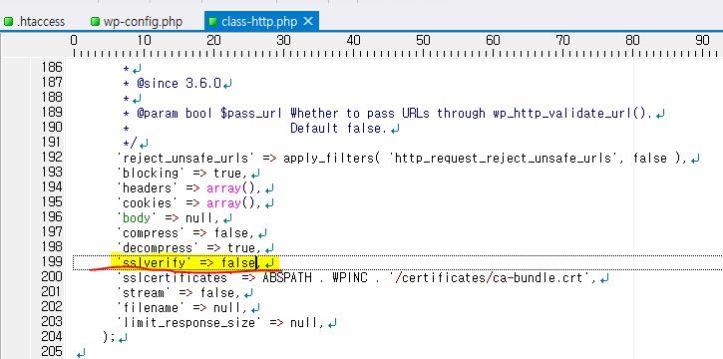 update 나, 테마 설치, 플러그인 설치 등을 하고자 할 때 ssl 인증 관련 오류를 보여주고 처리가 되지 않는 문제가 있었다.